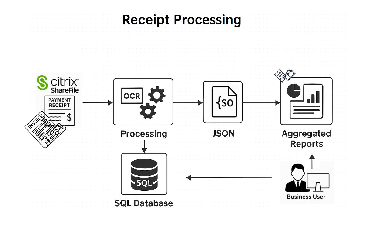 Developed end-to-end ETL pipeline designed to extract and standardize payment receipt data from Citrix ShareFile storage. Each customer folder contains a variety of receipt formats including Images, PDFs, CSVs, and Excel files. The pipeline reads and processes these receipts using OCR for image files and PDF/data parsing tools for other formats. Extracted information is transformed into a standard JSON structure, then loaded into a MySQL database for querying. Users can perform aggregation operations, track business KPIs, and view dynamic reports based on the structured data, enabling smarter financial insights from previously unstructured content.